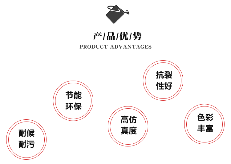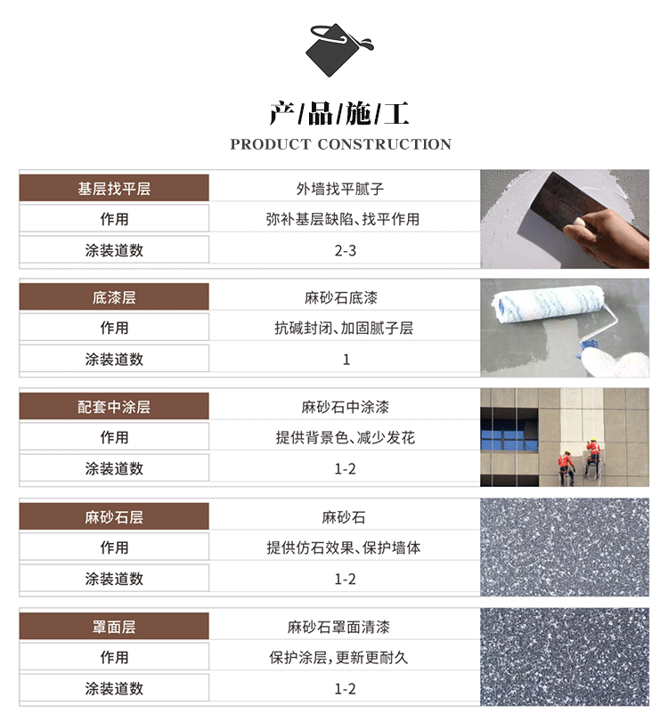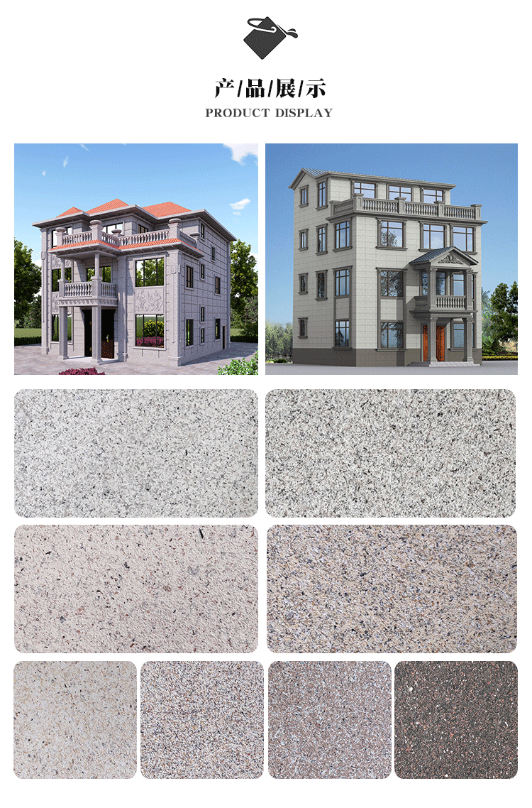 一次噴涂成型,效率高,噴涂?jī)杀樾Ч?,凹凸感更?qiáng),紋理更清晰;噴涂后不會(huì)像巖片漆那樣變形翹邊;施工寬容性高,可避免掉砂、發(fā)花、接茬等施工弊病。