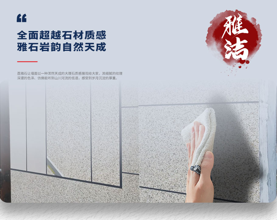 甄選高溫煅燒工藝彩砂搭配高端硅丙乳液,讓每一面墻面都仿佛蘊含著大理石的山川韻味。讓家的墻面不僅是視覺上的享受,讓人凝視間油然而生對外墻大理石之美的贊嘆;更讓墻面似經(jīng)過歲月的雕琢,每一處紋理都是自然賦予的靈魂饋贈。讓家不再單調(diào),賦予生機與承載溫馨的家庭篇章。